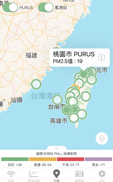 有一個地方是我最喜歡就是他可以記錄附近政府空氣監測站與PURUS air 所測試到的空氣品質狀況.