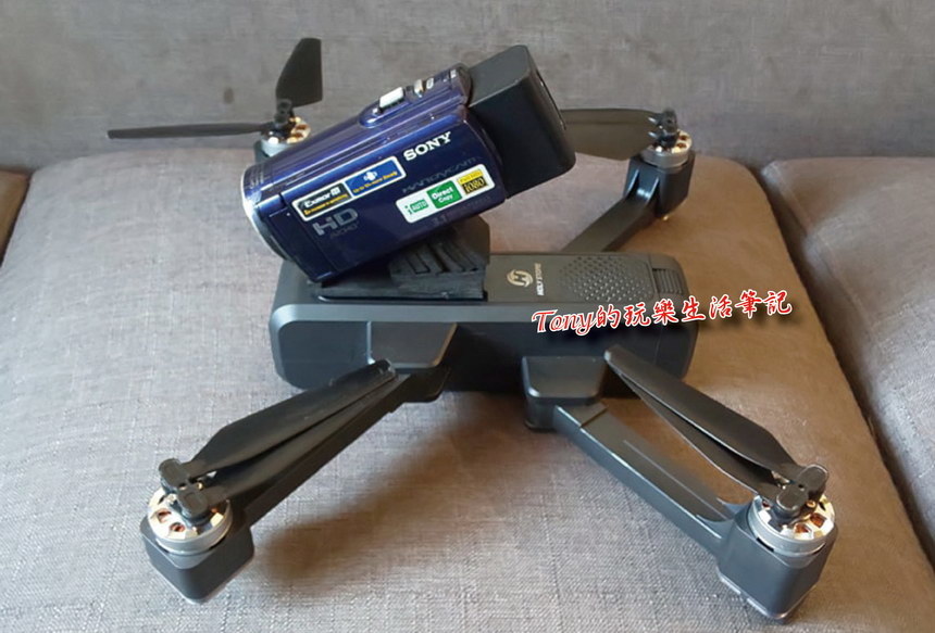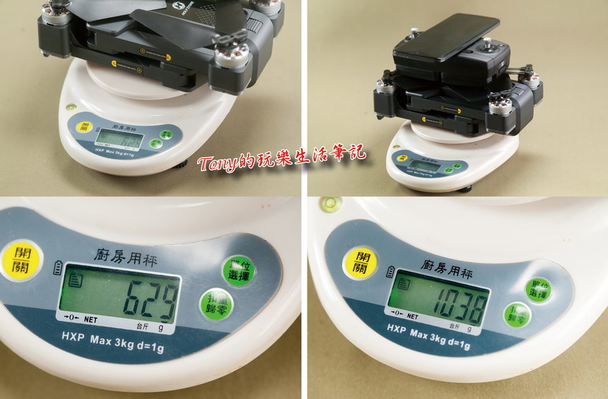 ▲《Holy Stone HS550無人機》空機重量才629克,就算加上遙控器跟我的手機,也才1038克,這還比《DJI MAVIC 2 PRO》的1500克還輕多了!《DJI MAVIC 2 PRO》的抗風力是五級風,但因為《Holy Stone HS550無人機》並未標出抗風力大小,所以預估在二至三級風的抗風力(經過實測是二級風可以穩地操控,但仍會受風力影響晃動,三級風就很會漂移不好操控)