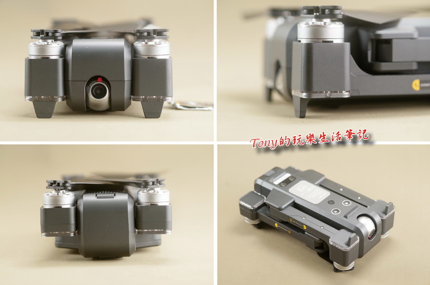 ▲老實說《Holy Stone HS550無人機》的質感真的是不錯了,跟幾千元的玩具機比起來,還真的多了點專業感,只是到目前為止,拍照錄影效果還沒測試之前,只能說最少外觀與配件算是對的起它的價位。前面銀色圓頭的部份就是那個《2K全高清+110度廣角鏡頭》,只是我看了又看,這應該是塑膠鏡片,而非玻璃鏡片。而馬達是無刷電機馬達,這一看就知道不防水,所以一下毛毛雨就不用去飛了。不過這馬達還真不錯,轉動起來非常的順,就是不知耐用度如何﹖得等以後多飛幾趟來看看是否耐用了。另外腳架的設計是幾乎貼地的,這點我比較好奇,怎麼沒有再做個撐高支架來撐高一點﹖這樣不會容易磨到底部嗎??(底部前後是有兩塊不怎麼高的橡膠墊,看來就是適合平整的硬地起降飛行)