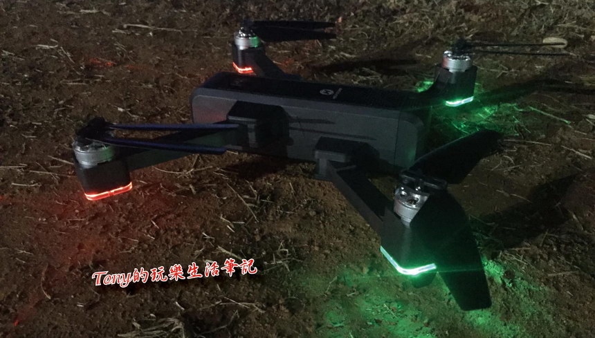 ▲正確的定位與地磁校正後,前方為固定紅燈,後方會是固定的藍燈,這在夜間飛行時可以協助目視定位《Holy Stone HS550無人機》的位置與方向。