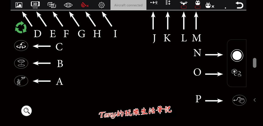 P﹕自設軌跡飛行(先自行在地圖上畫上軌跡,上傳到《Holy Stone HS550無人機》後,就會自動依照設定的軌跡飛行,但飛行高度是由自己手動去控制)