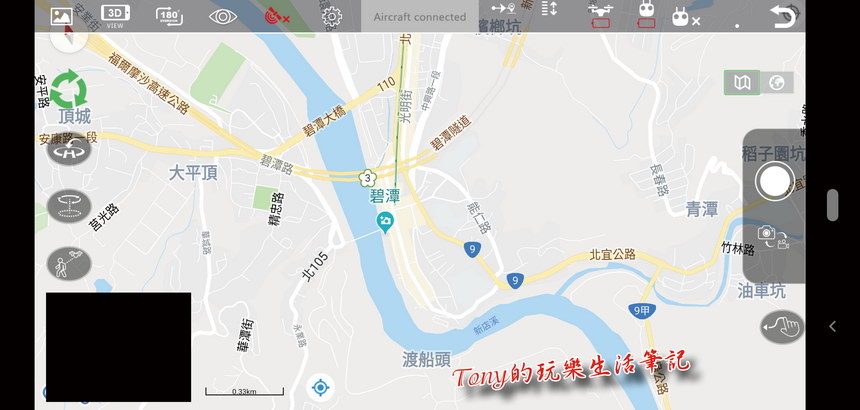 ▲切換到地圖模式後,靠近右上方還可以再切換成地圖與Google的衛星照片(這個又有點像是《Holy Stone HS550無人機》的高空實景照)。