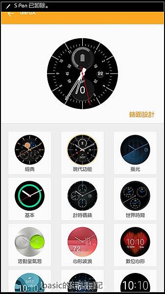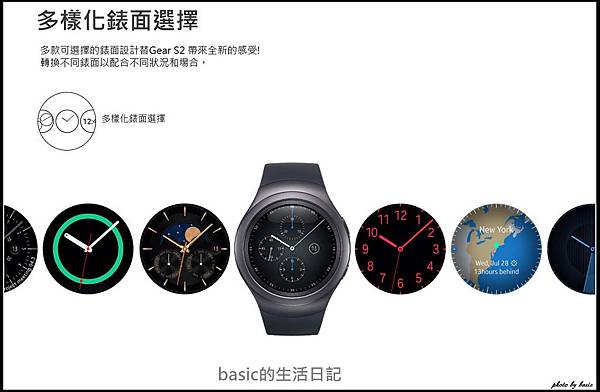 因為這次的Gear S2採用圓形錶面 , 更接近傳統手錶 , 原廠也內建了相當多樣化的錶面設計..
