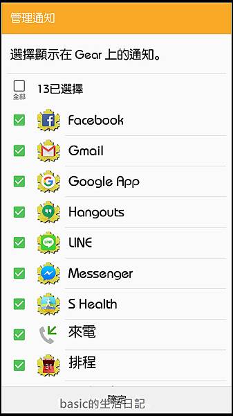另外可以選擇顯示在Gear上的通知