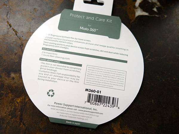 市面上已經買得到Moto 360的保護貼了,聽說還有玻璃貼!小宇則是選擇了官網販售的保護貼,Made In Japen令人放心。