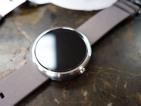 第一眼看到Moto 360,就覺得他比我想的還要有質感!圓形LCD配上Corning Gorilla玻璃,反射出了的光澤十分誘人。沒有搭配和Apple Watch相同的藍寶石,質感上和爽度上來講,有點可惜;不過其實比起藍寶石來講,康寧大猩猩玻璃的技術更加成熟、更加耐摔。