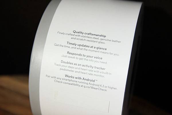 以往的智慧型裝置,都以功能為主打特色;Moto 360外盒所印的種種特色中,「精細做工」竟然放在第一位,畢竟手錶除了功能外,有飾品功能的外形也很重要。