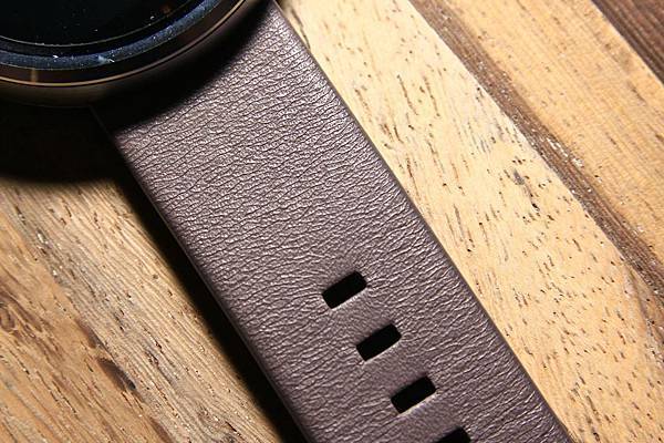 沒有玩過高級錶的小宇,對錶帶其實不太懂,不過聽說Moto 360的錶帶好像也請了皮革大廠製作;外側看來微微會反光,可以看到細膩的皮革紋路,質感果然不錯。