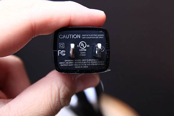內建充電器輸出為5V/550mAh,比起一般手機充電器的5V/2A少一些。