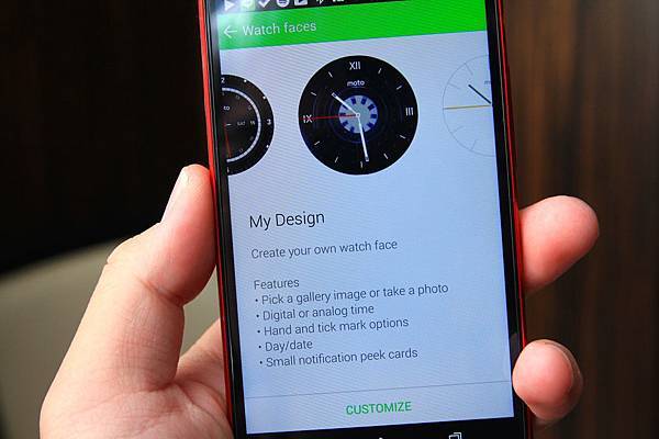 先來說說我對智慧型手錶的看法:我覺得一樣新裝置至少要讓人能正常使用才能算是初步成熟,就像Smart Watch一樣,至少要讓使用者能「把它當正常手錶使用」後,才有資格提進一步的功能。而在Moto 360以前的智慧型手錶,只有方形錶面可選,實際戴在手上,其實看上去有種格格不入的感覺;而Moto 360從宣布採用圓形LCD螢幕起,就一直收到矚目,很大部分原因就是因為圓形錶面和一般手錶較相似。因為圓形錶面和簡約的設計,才讓我們能把Moto 360當一隻「一般手錶」戴著,也是因此小宇才會認為他是第一支「步入成熟」的智慧型手錶。