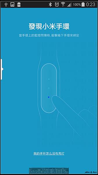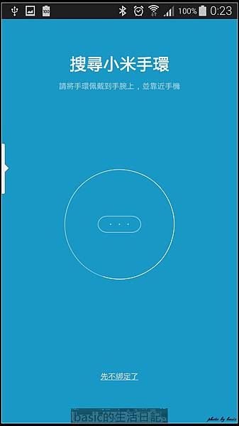 設定完之後就會開始搜尋小米手環 , 基本上只要手機的藍牙一打開 , 10秒內就會找到了 , 並且無需配對..
