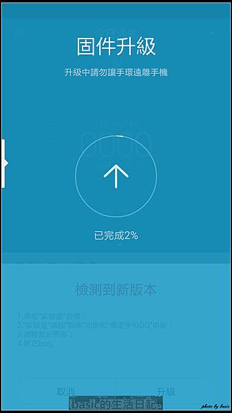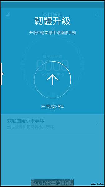 手環的軔體與軟體一併升級 , 速度蠻快的 , 大概一分鐘就搞定了..