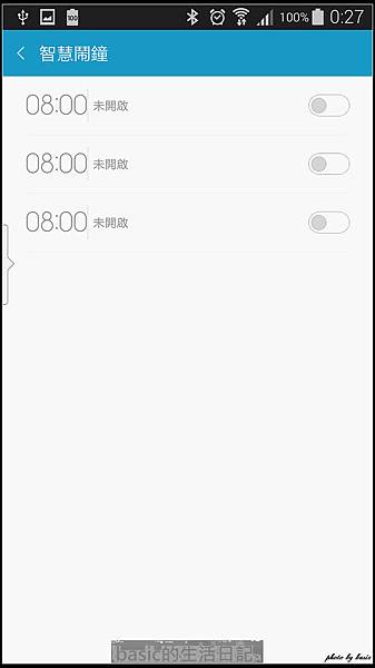 這是設定鬧鐘的介面 , 如果您是手機鬧鐘叫不醒的人 , 戴上小米手環會用震動來叫醒你..呵..