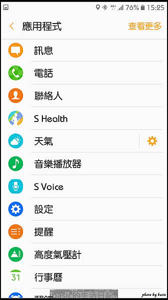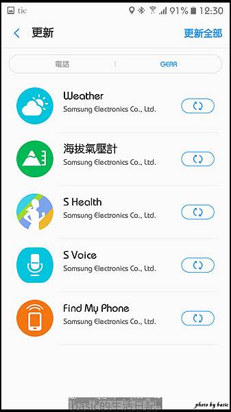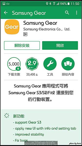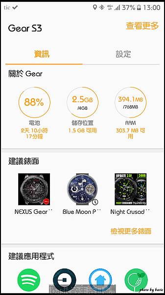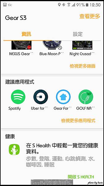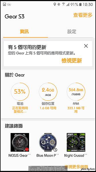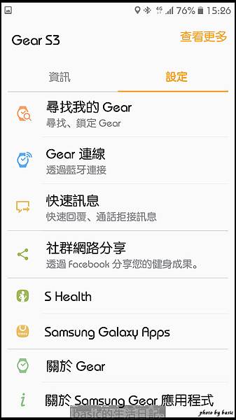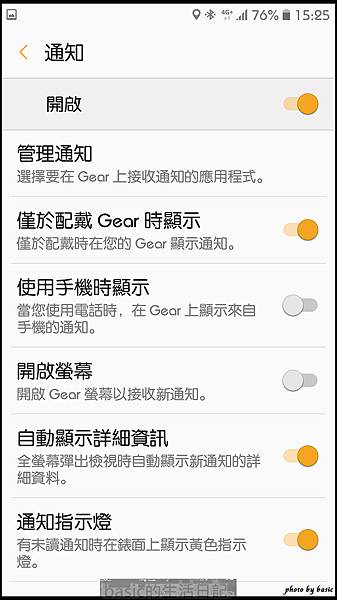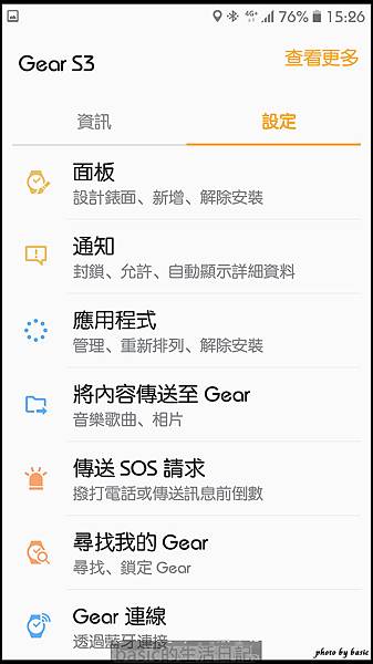 Samsung Gear軟體中可以看到手錶的各項資訊