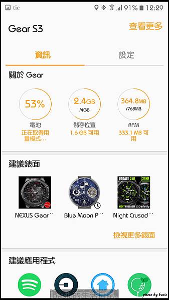 可以同步手機中的音樂與相片到Gear S3中 , 當沒有與手機連線時 , 用手錶也可以獨立播放音樂