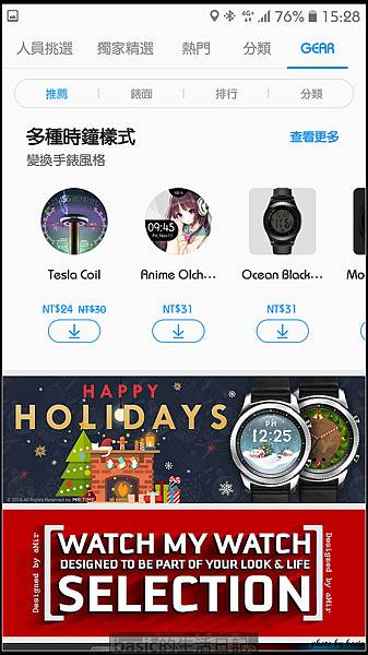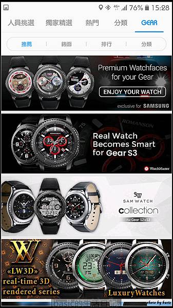 還沒下載前 , Samsung Gear裡已經有內建相當多種錶面了..