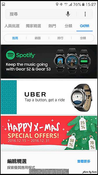 在Samsung APPS裡有Gear專區 , 可以看到已經有非常非常多軟體可以下載安裝..