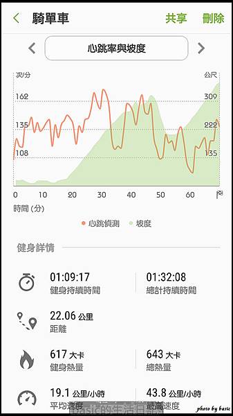 包括心跳 , 速度 , 坡度 , 時間 , 路線都可以呈現出來..