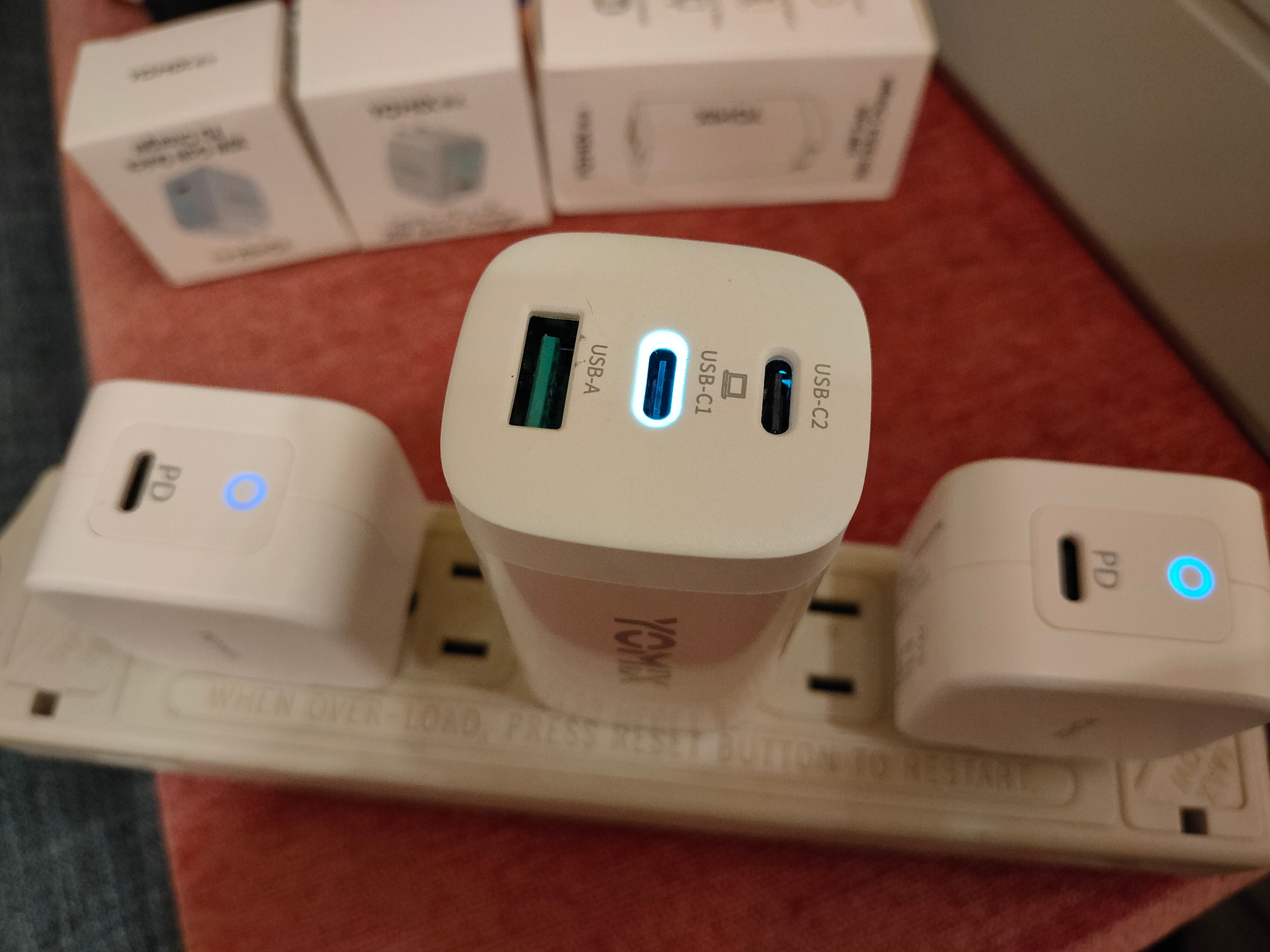三個充電器, 同時上工.