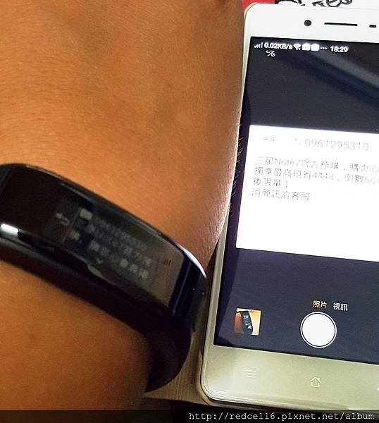【▼】Garmin vivosmart HR(一卡通版)行動支付心率手環可以接受智慧型行動裝置簡訊通知。