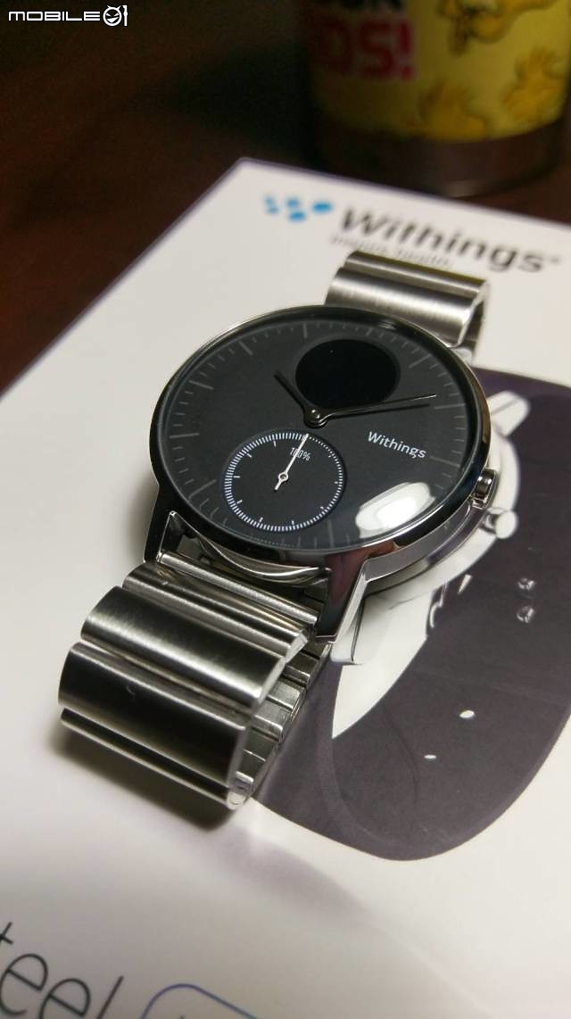 Withings Active HR也是待機超過20天以上的智慧手錶,實體指針、秀氣的外觀,但實際上的功能就比較侷限,主要就是看看時間、計步、心跳紀錄等等,通知也因為畫面很小,並不實用。