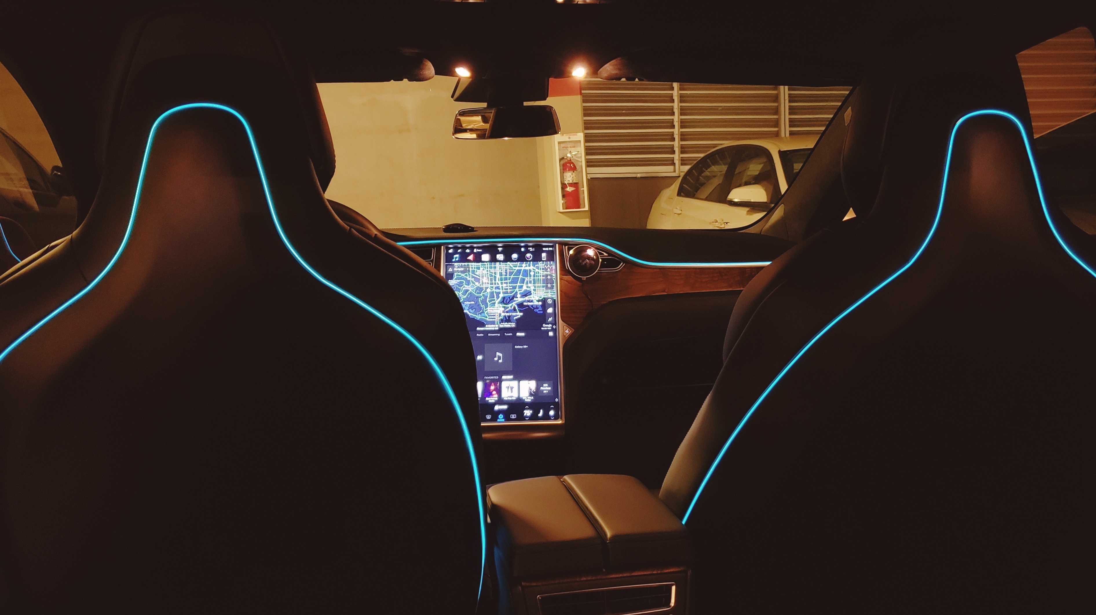 年初時買了特斯拉Model S,因為另一台車是BMW 新5系,一直覺得特斯拉的內飾少了什麼,覺得沒有氣氛燈晚上開車各種不嗨森。最近發現有簡單便宜的解決辦法,覺得有大升級的感覺,所以拍了個影片和車友們分享~ 前面的Dash可以完美的拉出一條氣氛燈,而且藏線容易幾乎無感。 後面呢,因為如果要安裝在門面上會很麻煩,而且開門時會看到線,感覺很怪,但椅背剛好可以弄,也很好藏,所以就這樣安裝啦~ 安裝費用一共只有成本22美金,差不多台幣600元,而且不難!拍了影片教大家怎麼用,喜歡歡迎訂閱支持~