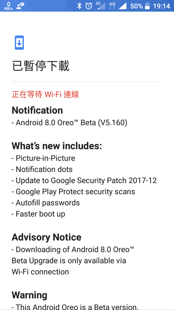 <已暫停下載 正在等待wifi連線>