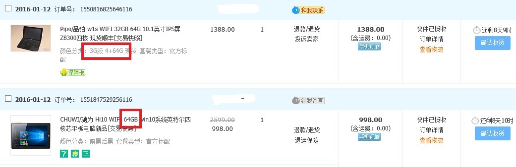 兩台規格都是10點觸控,4G+64G,CPU是Z8300,解析度都是1920x1200