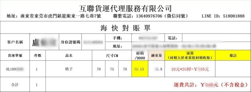 這家互聯台灣集運算是蠻全方位的,除了一般商品之外,像是大型家具、電器用品、含電池的東西、食品,總之就是普貨、特貨都有運送,對於常買淘寶的朋友可以說是非常地方便。