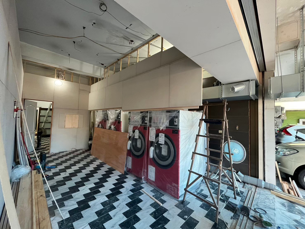 ▼店面也算現成的吧,本來是出租給人做美髮店,對方退休不做了,順勢收回來自己用。空間只能裝4台機子,所以SeSA洗衣吧建議全部選擇日本AQUA洗脫烘一體機,做到效用最大化。