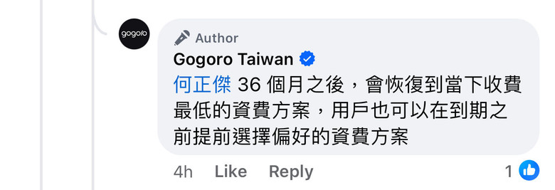 此外,Gogoro再推出期間限定至3月31日止的「隨你騎 限時新購資費方案」,可選購月租 199元或月租499元電池資費,最高可騎到1725公里。不過該方案僅限Gogoro新購「綠牌車款」如Gogoro JEGO、Gogoro VIVA 以及PBGN聯盟的綠牌新購用戶,引起舊車主抱怨,直呼「怎麼沒有照顧老車主」、「老客戶洗洗睡」。