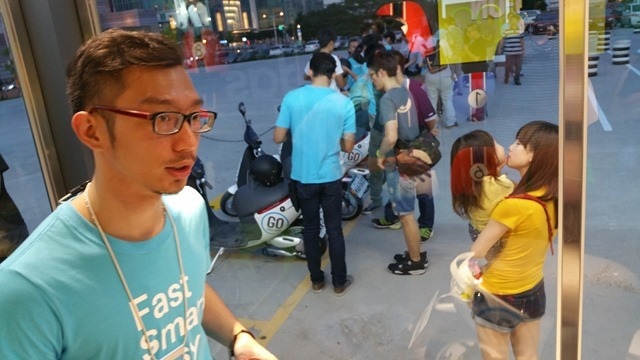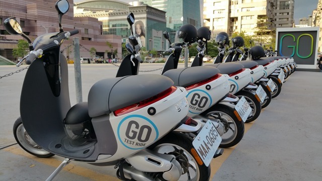 目前要看到一排有人騎乘的Gogoro Smartscooter智慧電動機車,大概就是拍紀念照了。