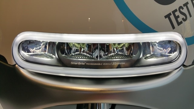 SmartBrite LED可調式頭燈,能感應周圍環境狀況,自動調整亮度,並且在停止時會自動變暗,在隧道裡自動開啟。