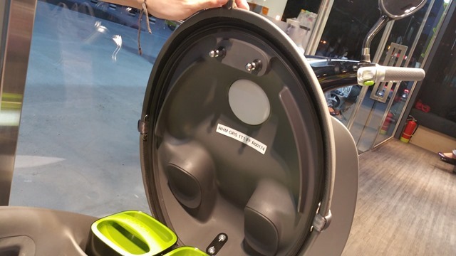 行李箱的空間,可放入一頂3/4安全帽,且使用類似矽膠的材質,能保護放置物品不會因碰撞受損。而考量大家對行動裝置的充電需求,所以在照明燈下面,有一組不使用時可裝上軟墊的USB插座,。
