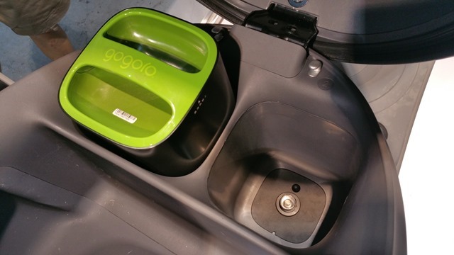 有Gogoro字樣的感應鑰匙。當按下白色按鍵後,車子電源開啟但還未啟動,需要把側柱歸位,再儀表板的GO鍵,車子才會正式發動。而Gogoro使用感應鑰匙,除了整體設計考量外,也因為鑰匙內的資料採用256bit加密,竊車賊現階段要打造一把相同鑰匙來偷車,幾乎是不可能的事,也藉此保護車子不會被偷。