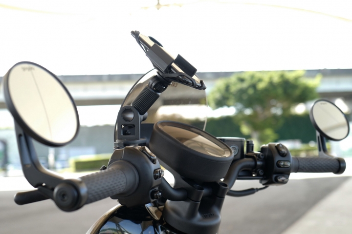 手機架也是現在每個人必備的配件, 找路導航來電什麼的一瞄就知道方便又安全, 原廠的質感很好但是挺貴的..., 這款CP值頂天, 煞車油蓋直接轉手機架, 密合度極高不漏油, 油蓋位置本身就在儀表板旁邊, 視覺角度絕佳不用轉頭, 微微喵一眼就可以看得到螢幕, 手機架要加購不能單買, 不過佛心價幾爸摳而已, 手機架套在長長的筒子的方式可以左右和上下180度喬你自己的最佳視覺角度和距離, 實際用在路面上很穩不會晃, 有空再來試一下越野路面