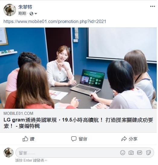 「喜歡該篇文章的原因?」很喜歡行銷達人(LG gram通過美國軍規,14吋更可能續電長達21.5小時! 打造提案關鍵成功要素!)這篇文章 , 原因如下LG gram系列筆電,14吋更可能續電長達21.5小時 很棒的蓄電力帶出門不怕沒帶電源線GOODhttps://www.facebook.com/profile.php?id=100006497827609