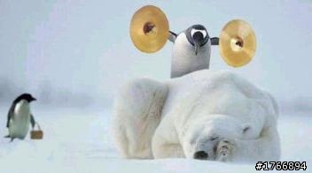 企鵝滑行撞到北極熊