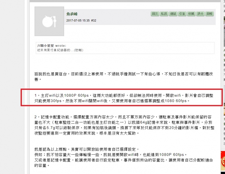 yehbow wrote:Mio的792D就是號稱目前少數可以同時前60fps、後30fps ,1080P的機種應該是你不會設定吧?但是如果你有開wifi的話因為會吃掉部分效能所以只能前後30fps平常你不開wifi是可以到60fps這台出來好一陣子了,如果不行,早就被罵翻了吧!怎麼樣這台也是mio的旗艦款了 真可憐好心教人關閉wifi就會有60fps卻被人頂只能幫你加5分了可能是我原本就知道答案所以搜尋很快吧連結