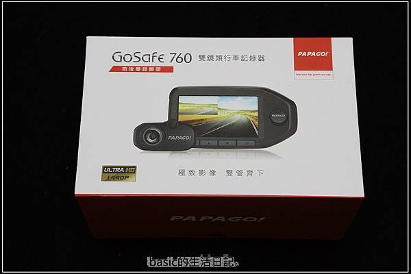 1.盒裝正面就寫出了Gosafe 760的一些特色 , 最大的特色就是它是擁有雙鏡頭的機種,