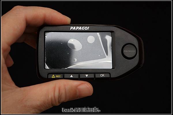 4.機器背面能看到2.7吋的大螢幕 , 下方有四個按鍵,分別是REC , up , down及OK鍵