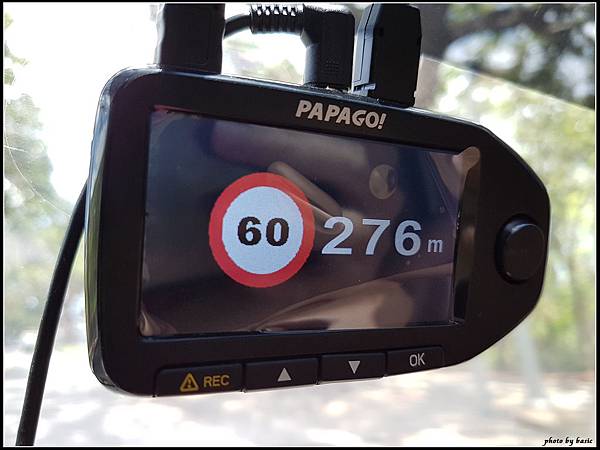 前方有測速照相時會顯示速限與距離還有多遠(需外接GPS模組)