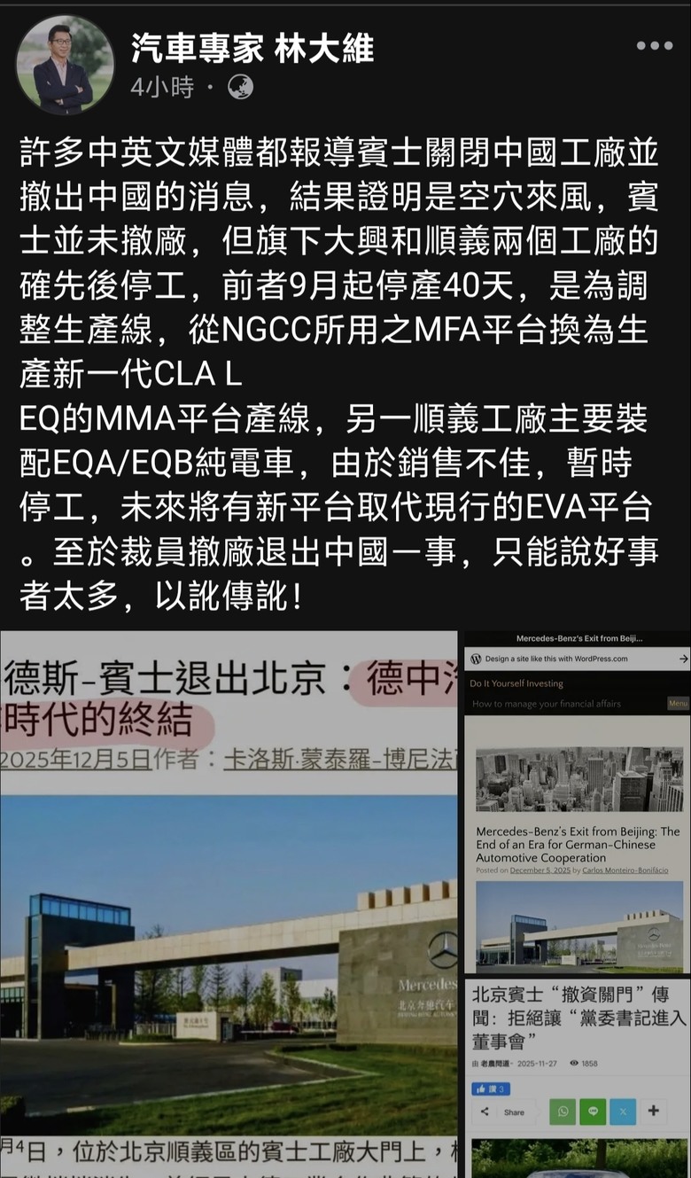 『賓士退出北京奔馳(BBAC)』 (12月4日前後)