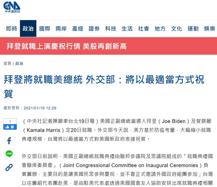 weird@ wrote:外交部新聞稿哪個才是真的?2020/12/29蕭美琴不出席拜登就職 外交部:美沒邀外賓2021/01/19拜登1/20就職 我駐美代表處未收到邀請函2021/01/21「蕭美琴上週早獲拜登邀請」台美斷交42年後首受邀美國總統就職典禮 一個總統的就職典禮邀請函會當天早上才給你???是想騙誰?
