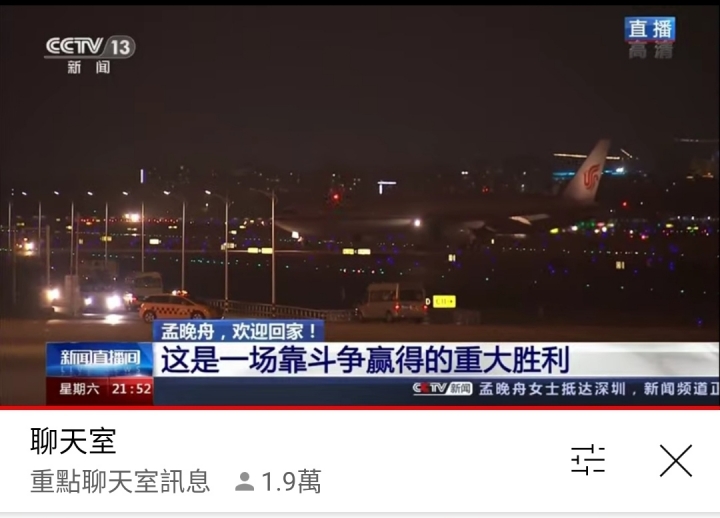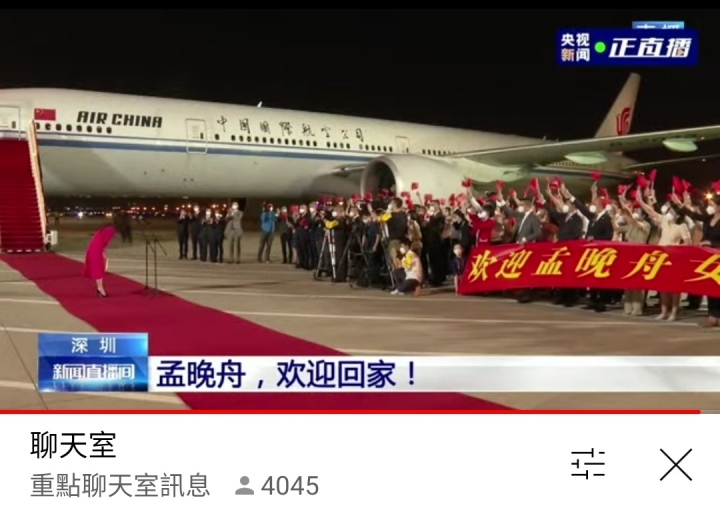 加拿大法官今天稍早終結對中國華為財務長孟晚舟的引渡程序,孟晚舟已搭機返國。加拿大總理杜魯道(Justin Trudeau)隨後宣布,遭中方關押逾千日的康明凱和史佩弗也已飛離中國,將於明天上午抵達加拿大。