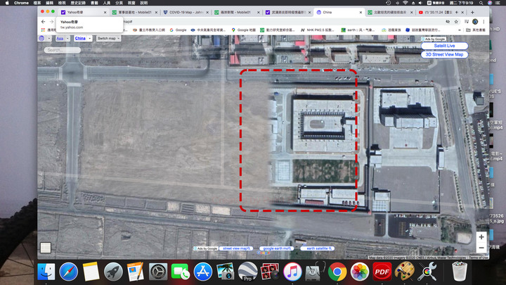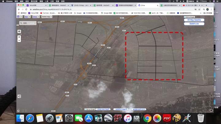 首先當然比對不同衛星照片的差異,找出蛛絲馬跡。劣者慣用「Google maps」、「Apple maps」和「MapBox」。前二者是因為他們的市佔率和影響力。尤其Google maps屢屢被西方媒體引用,作為集中營存在的證據。最後的Mapbox則是因為它是realtime(即時),特別是它證明了「達坂城再教育營」是假的。