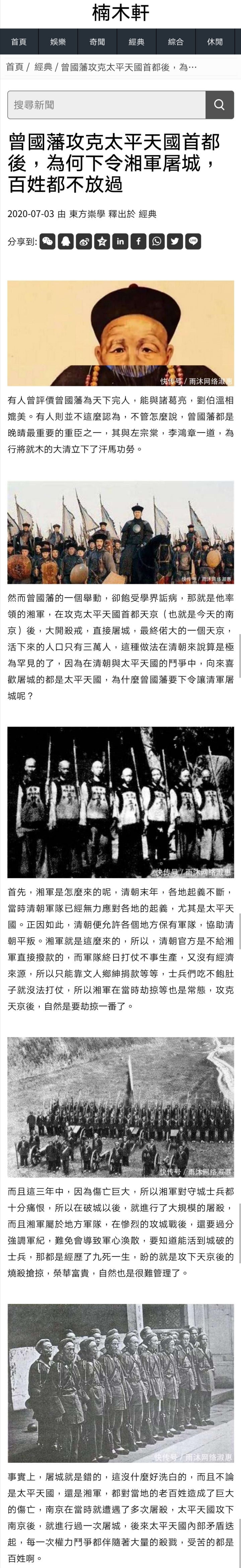 Erichuangtw1980 wrote:在霧社事件中,賽德克(恕刪) 你講的這些都不是能解釋湘軍在南京的屠城現在不是討論戰爭的對錯也不是討論殺人的對錯而是湘軍在南京屠城的原因已經明確戰勝沒有威攝的需要都是漢人沒有深入骨子的民族仇恨依然還是屠城不要一直把思考限縮如何合理化屠城湘軍的屠城這是很奇怪的事