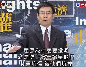 此人在政經看民視竟然脫口而出說屈原是為了避免被秦始皇焚書坑儒所以才投江自盡,可是兩者的時空相差1000年。