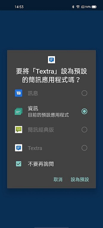 寶井秀人HYDE wrote:先去把MARK內抓簡訊APP,預設改為它即可內建"資訊"去設定內強制停止看看 感謝回覆我剛剛在google play另外下載兩個簡訊app, 一樣不會在預設應用>簡訊那邊出現"資訊"這個App無法用強制停止, 那個"強制停止"會一直亮著從這邊去看: 其他設定>程序管理>系統應用程式, 這邊才可強制關然後這邊就有前面其他人講的, 內建"相簿", 之前關了還是會再跑出來忘記在設定哪看到, 這個"資訊"是屬於核心程式(就是最高優先程度)只要重開機, 內建的資訊跟電話簿都會強制自起(會出現在其他設定>程序管理>系統應用程式)大概要root才能處理掉 (**自起那邊都有關掉"資訊")我有把"資訊"的儲存空間的快取跟資料清除, 其他第三方簡訊App的內容還在就是簡訊的內容是獨立資料, 每個簡訊的App都可以去讀取複製預設表面上可以改, 但是內建的"資訊"App是核心程式, 就是使用到關聯隨時會跳回預設反過來說, 國際板內建google, 你要把它核心停用也是很難, 沒搞好就崩壞了其實要用陸版手機, 早就有心理準備, 雖然過一陣子會有UI 2.0, 但是這個部份應該是不會改的下面這個是上面的打勾, 馬上跳"資訊"