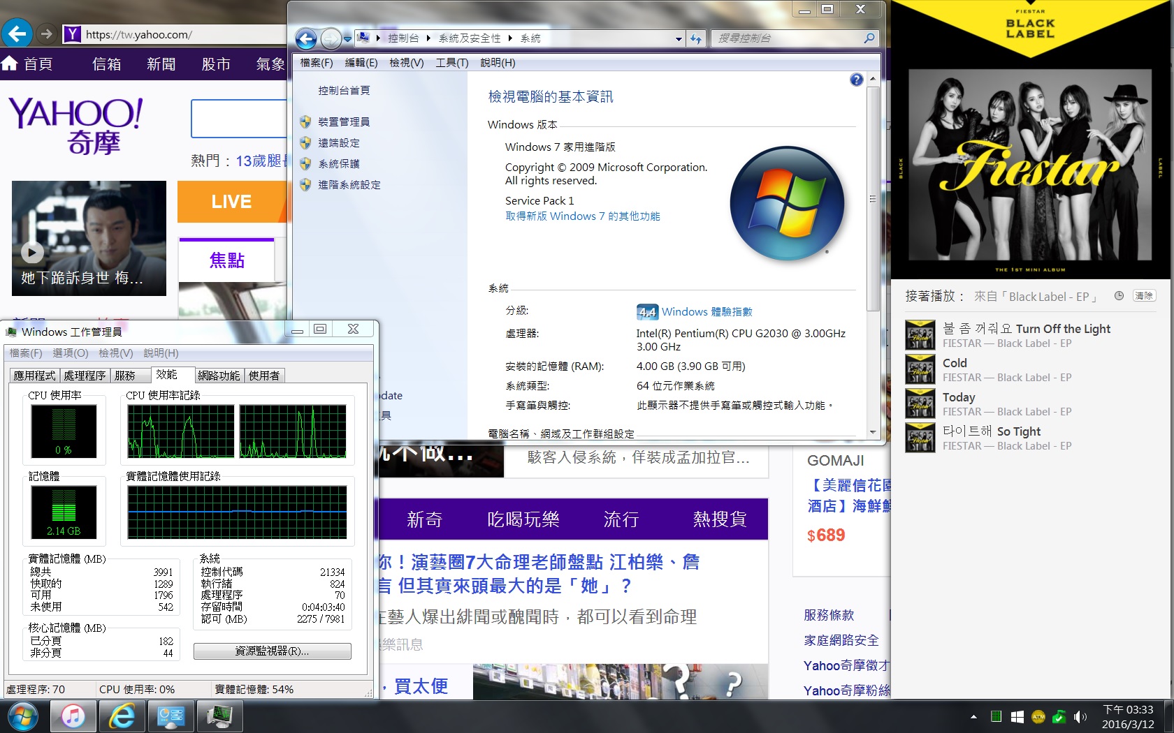 在家習慣邊聽歌邊使用桌機上網(WIN7),就看01上的文章之類的,有發覺開啟網頁的時候, iTunes(版本 12.3.2)會有播放不順暢甚至歌曲變慢的情形,ipad air 或小米4I播放 都沒這些問題產生apple music剛使用沒幾天,之前是使用Spotify沒有這個問題發生,請 問這是桌機記憶體不足嗎?還是其他問題?附上一張圖片,請各位看看! 另外~使用桌機(win7)時,要怎麼看歌詞?